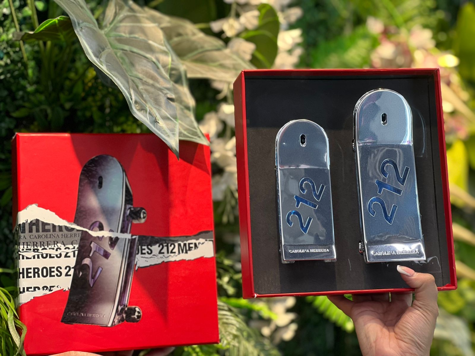 212 Heroes fue creada por Domitille Michalon Bertier, Juliette Karagueuzoglou y Carlos Benaïm. Las Notas de Salida del estuche de perfumes original 212 Heroes De Carolina Herrera son pera, jengibre y cannabis; las Notas de Corazón son geranio y salvia; las Notas de Fondo son almizcle y cuero.
